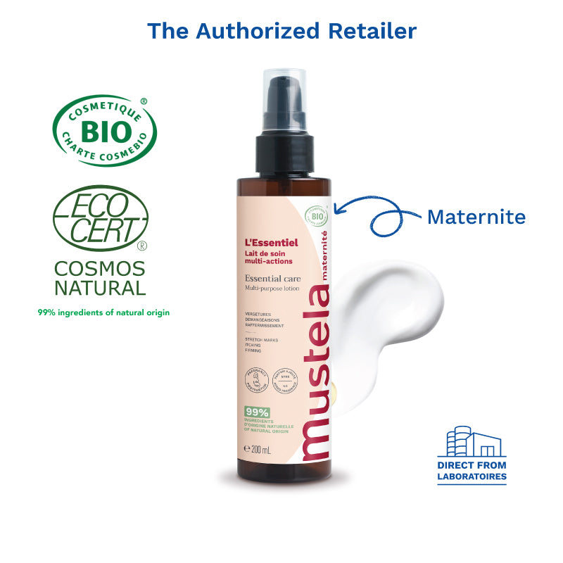 Mustela's certified organic Essential Care Multi-purpose Lotion meets the skin's
